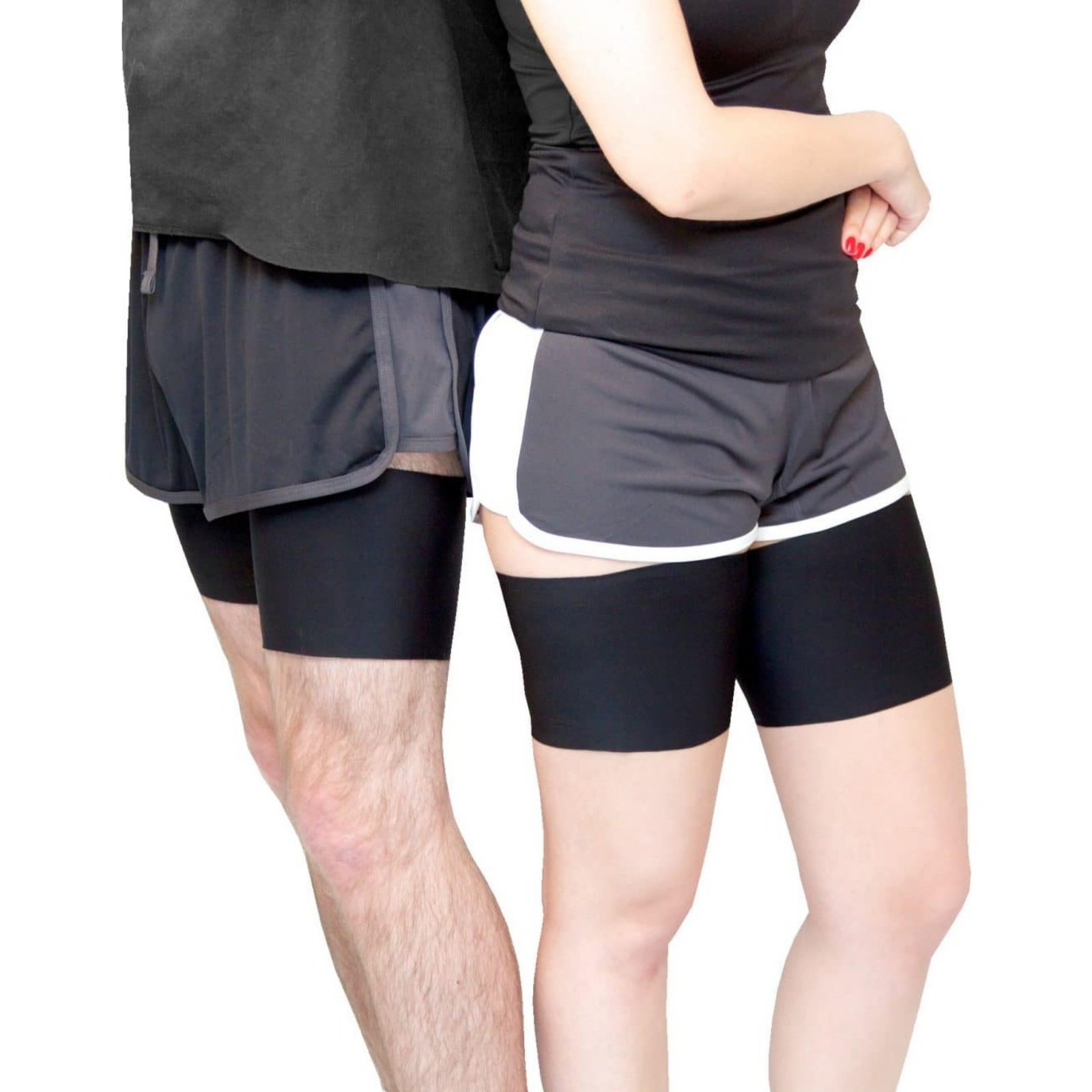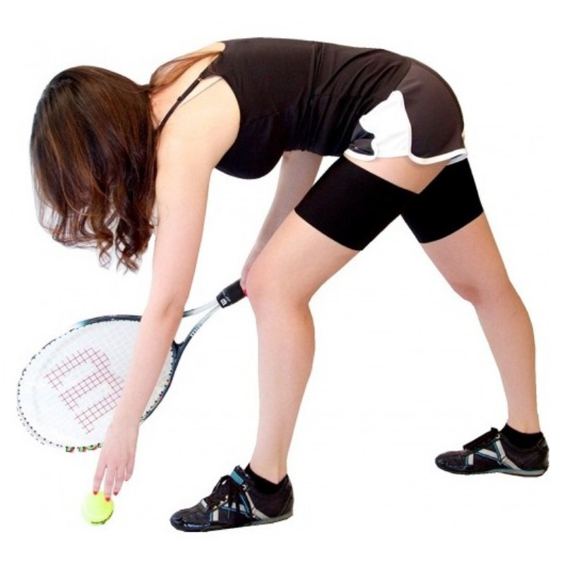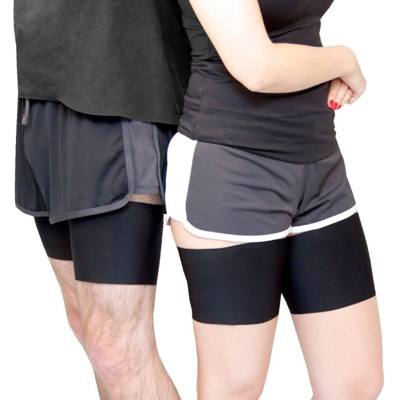 Bandeletky jsou vyrobeny z širokého pruhu hladkého elastického materiálu, který se lehce přizpůsobí vašim stehnům a dokonale je obejme. Dva široké silikonové pásky, které se nachází podél horního a spodního lemu, zaručí, že bandeletky budu perfektně držet na svém místě a skvěle tak ochrání vnitřní stranu stehen před nepříjemným odřením. Můžete se tak bez starostí věnovat běhu, tenisu či jinému oblíbenému sportu.