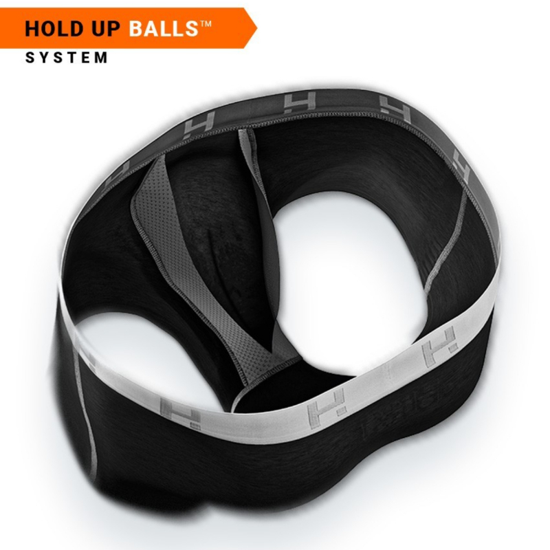 Boxerky LH jsou vybaveny systémem chráněným evropskou patentovou přihláškou HOLD UP BALLS, který se skládá ze dvousíťové tkaniny, umožňující dokonalou podporu intimních partií. Aby se předešlo nechtěnému tření, je přední část boxerek opatřena podšívkou. Každé boxerky LH se vyznačují high-tech tkaninami a špičkovou povrchovou úpravou a je exkluzivním výtvorem studií LH.