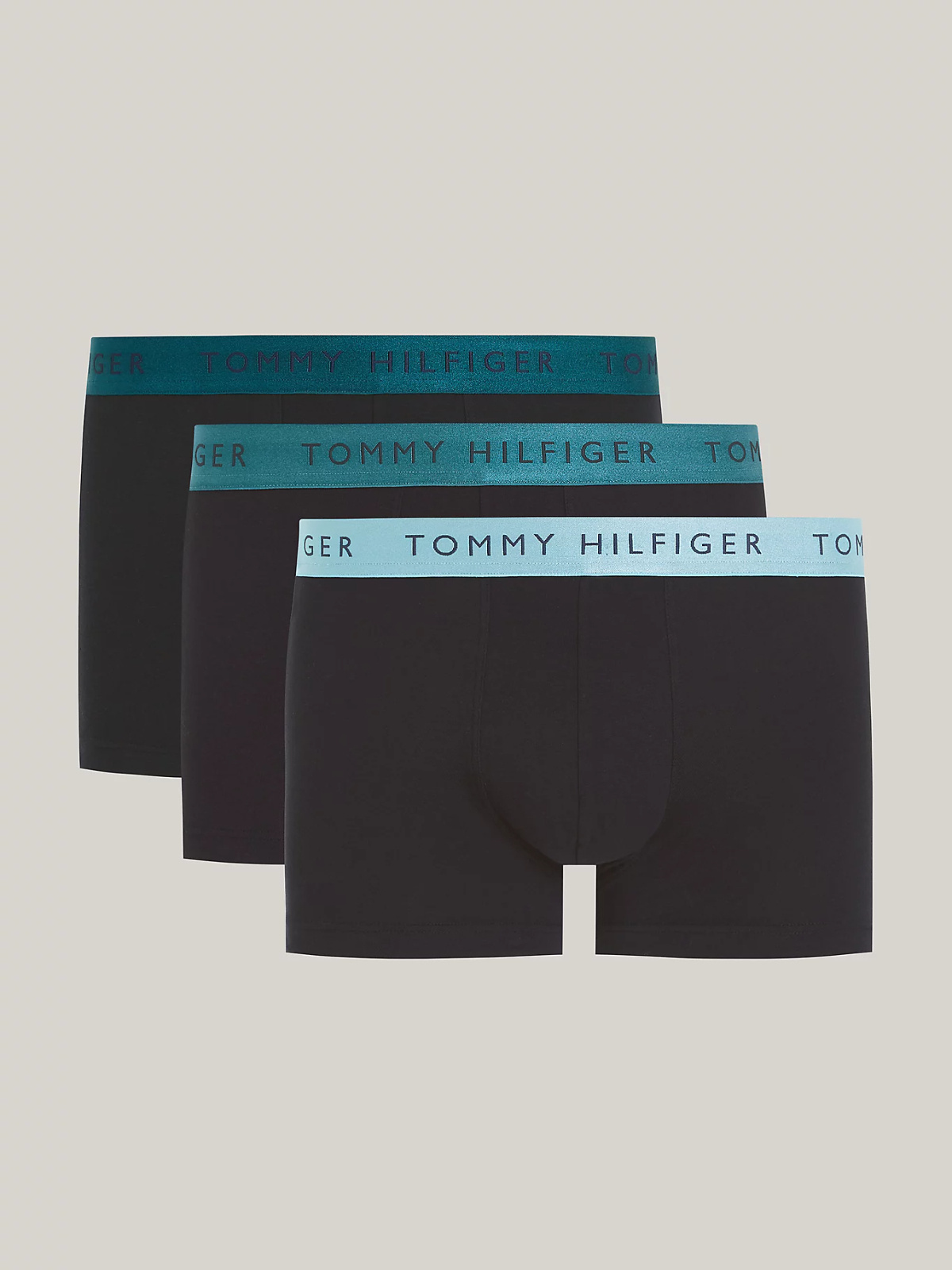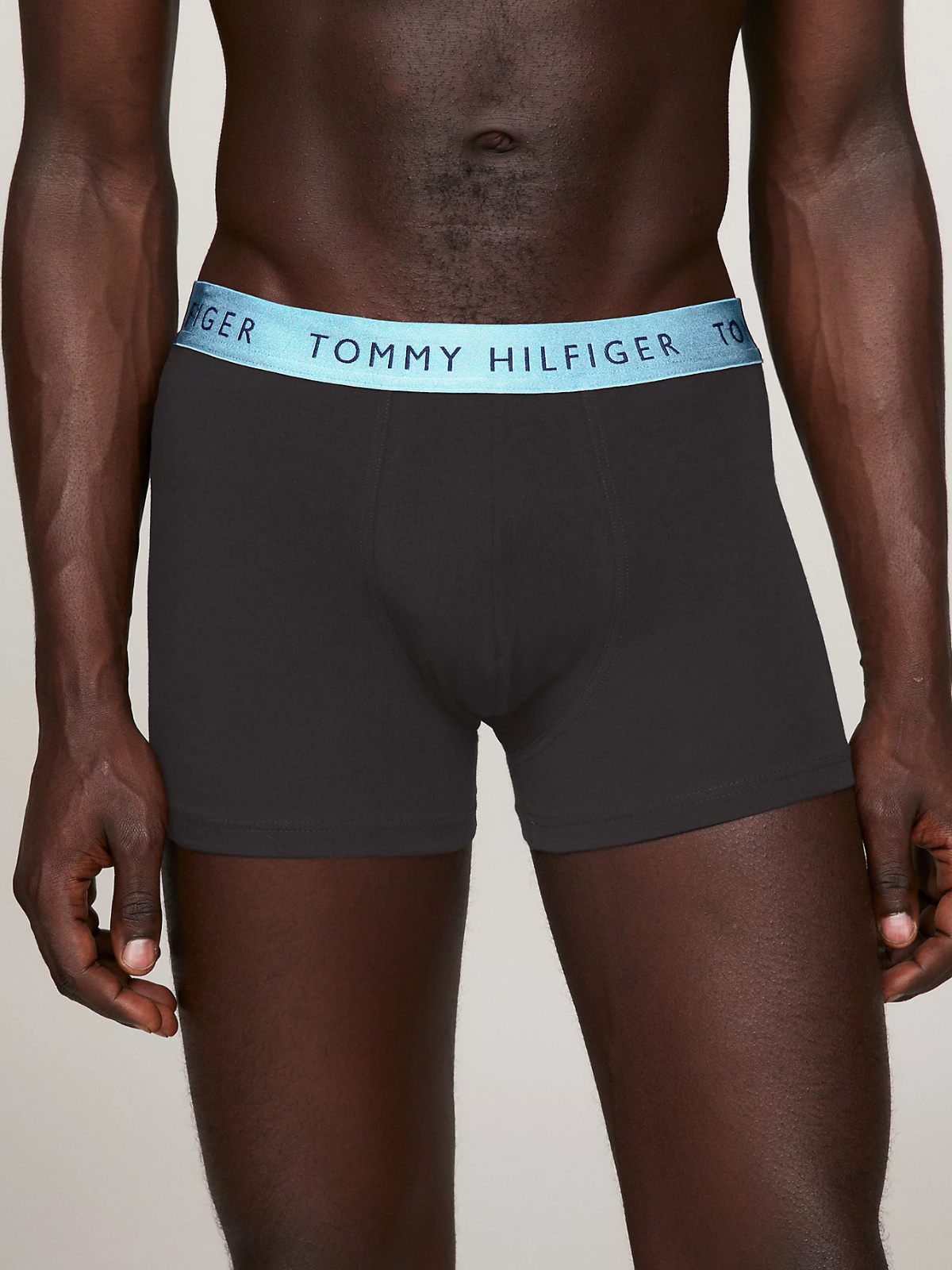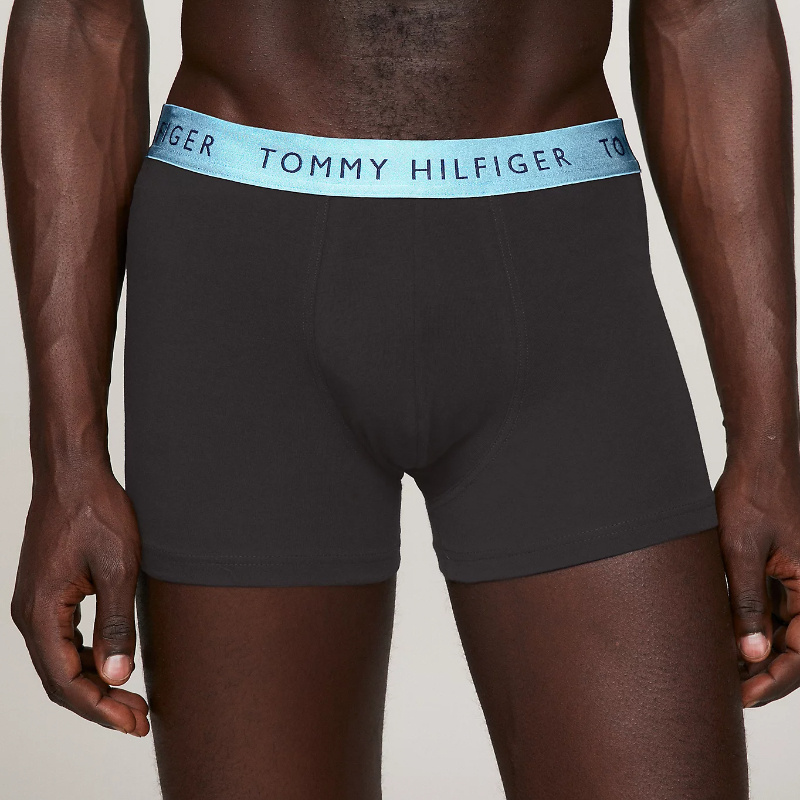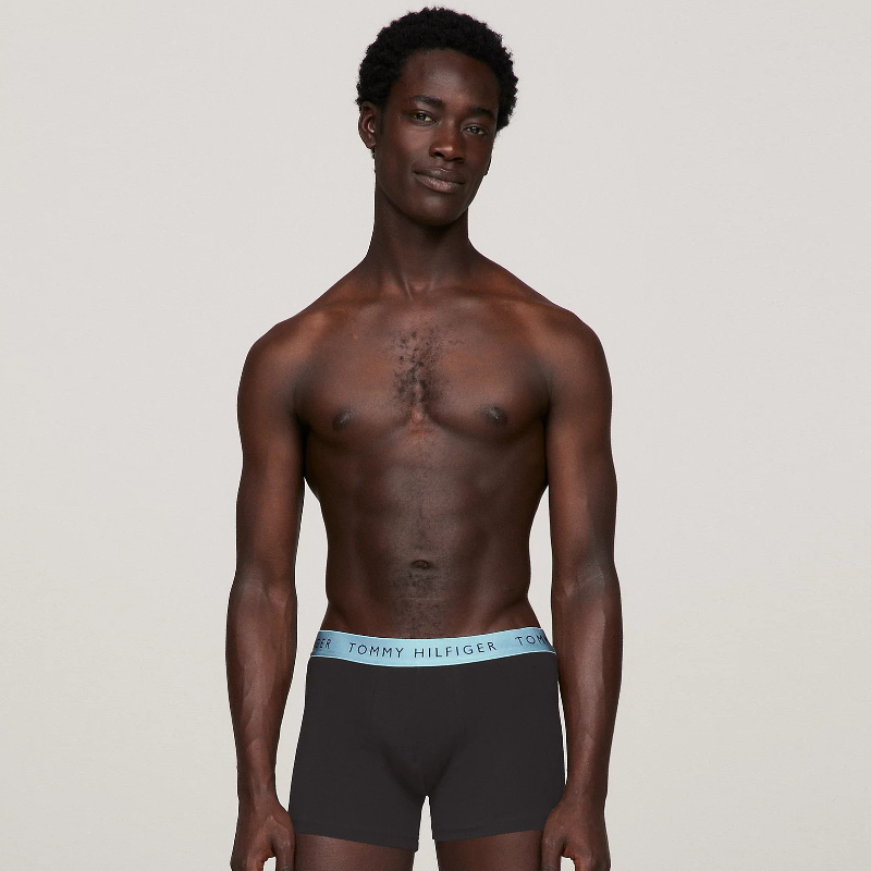 Balení tří středních boxerek. Jsou vyrobeny z recyklované bavlny s příměsí recyklovaného elastanu pro lepší pružnost. Pohodlná elastická guma v pasu nese nápis značky Tommy Hilfiger.
