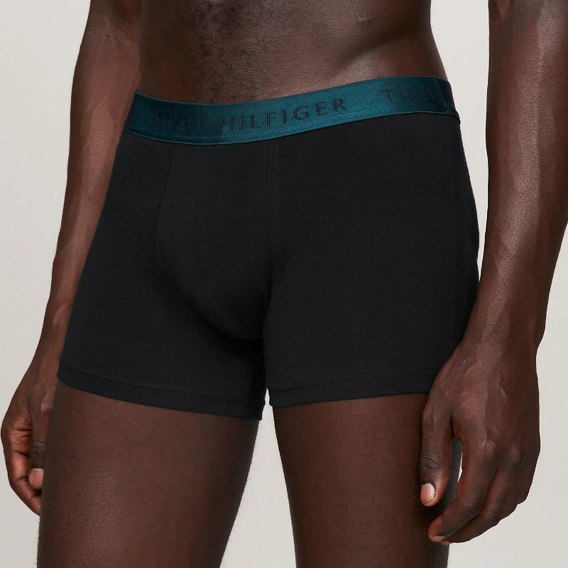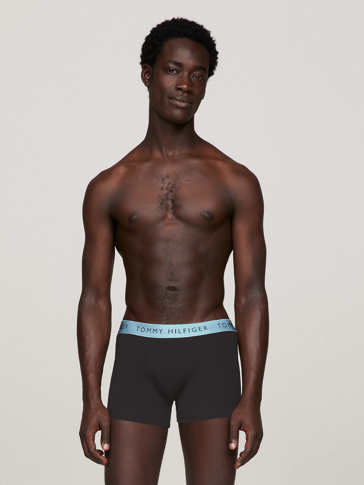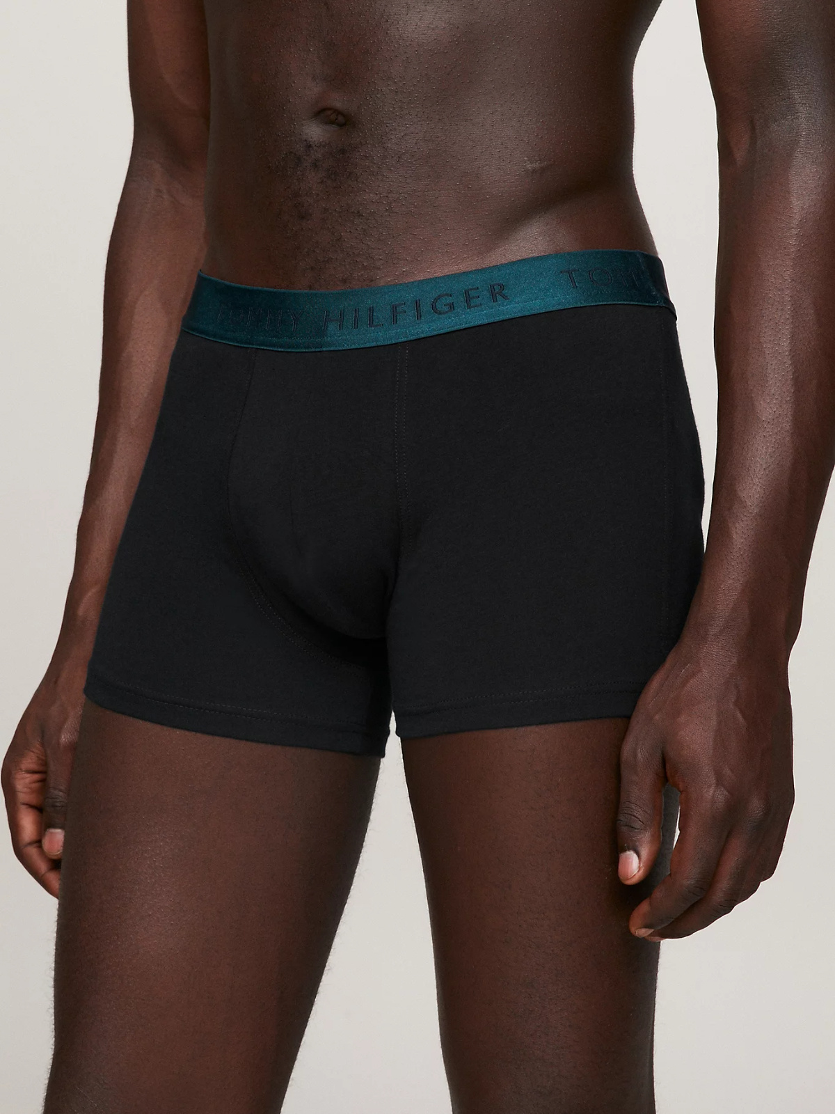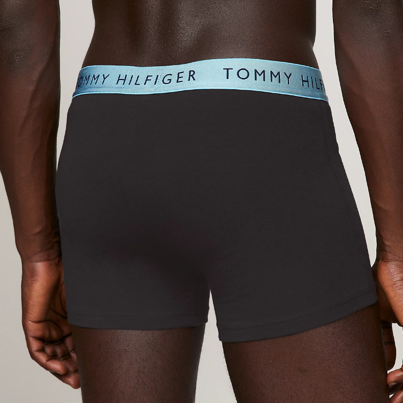 Balení tří středních boxerek. Jsou vyrobeny z recyklované bavlny s příměsí recyklovaného elastanu pro lepší pružnost. Pohodlná elastická guma v pasu nese nápis značky Tommy Hilfiger.