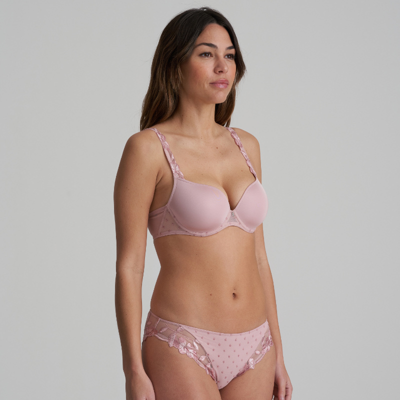 Kalhotky vás vynesou až do samého nebe. Precizní saténové výšivky rostlinného vzoru a drobných teček nechává promlouvat lehkost, něhu a čistou eleganci. Průsvitný tyl působí smyslně i nevinně zároveň. Začněte létat s kolekcí Agnes.