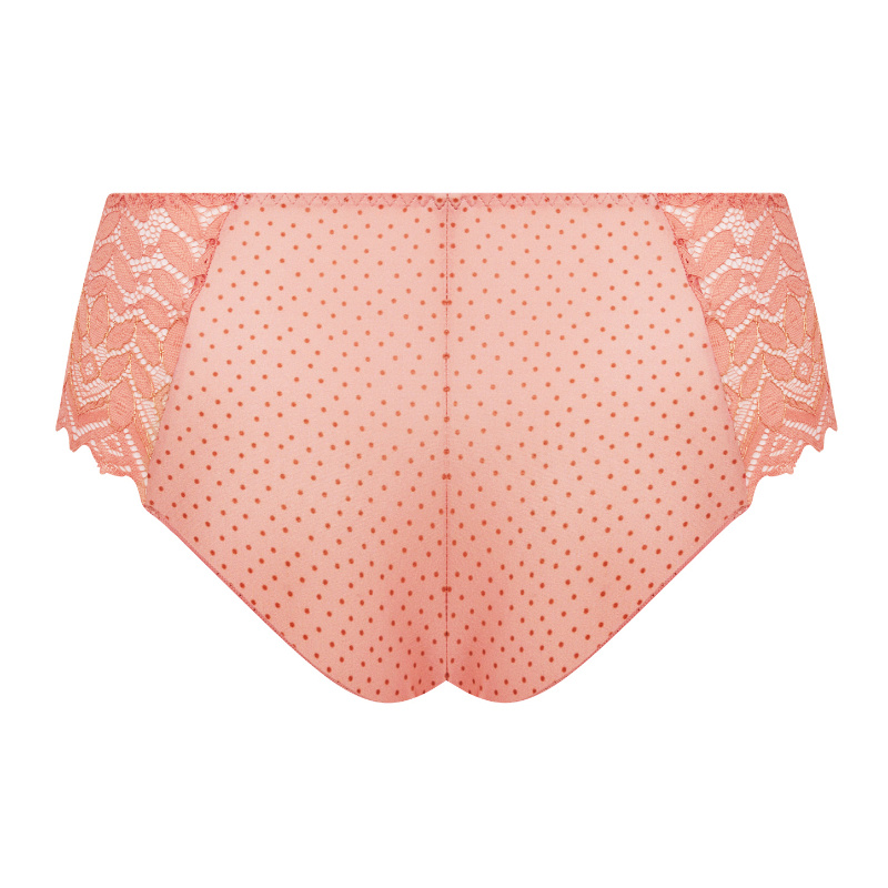 Kalhotky šortky vás svedou opojným likérem něžnosti. Květinová krajka z měkkého žakáru protkaná zlatými lurexovými vlánky a puntíkovaný retro vzor dokazuje, že nadčasová elegance i retro styl jde ruku v ruce. Užívejte si jiskřivé energie s kolekcí Petille en glam.