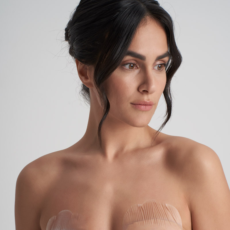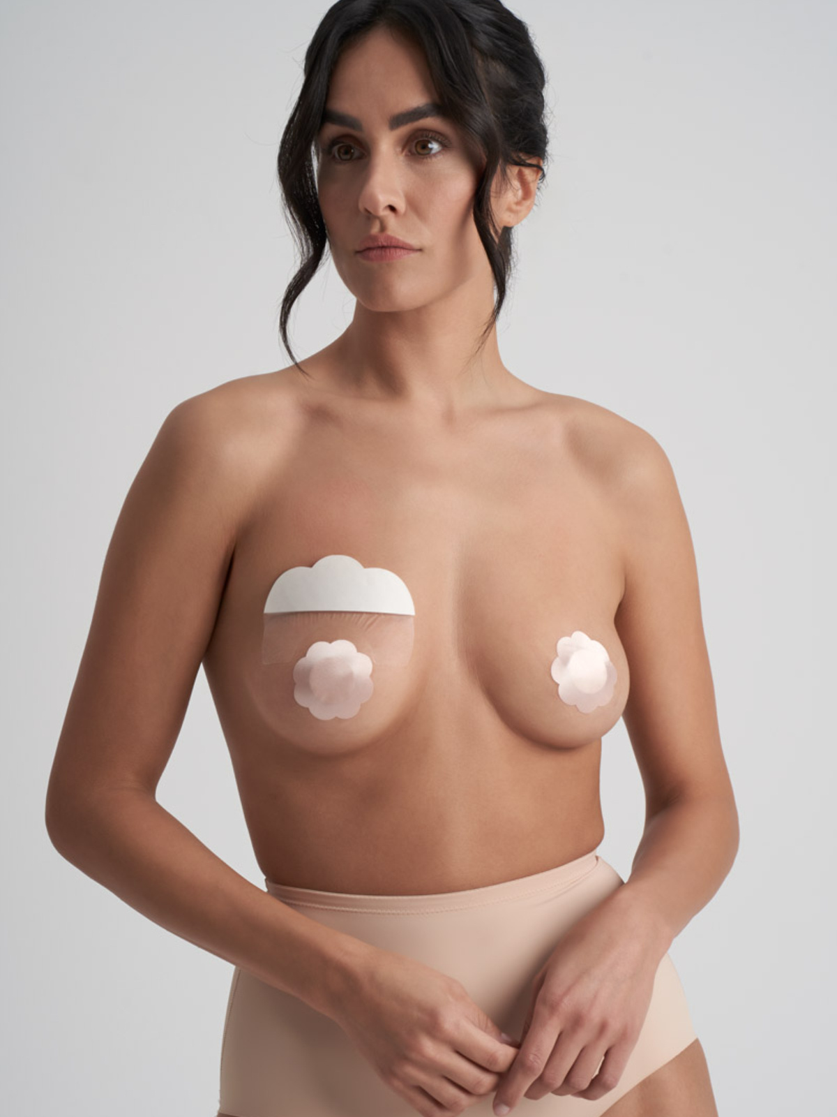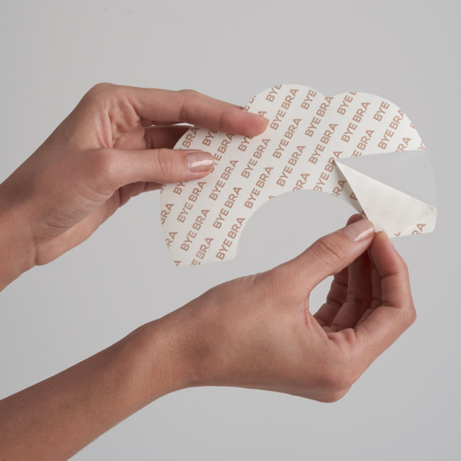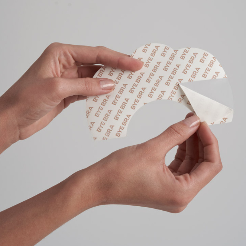 Neviditelná podprsenka pozvedne vaše poprsí bez ramínek a obvodů. Podprsenku tvoří lepky na bradavky a tejpovací pásky. Nadchne vás jednoduchou aplikací a naprostou neviditelností pod oblečením. Odhalte tajemství dokonalého outfitu s Bye Bra.