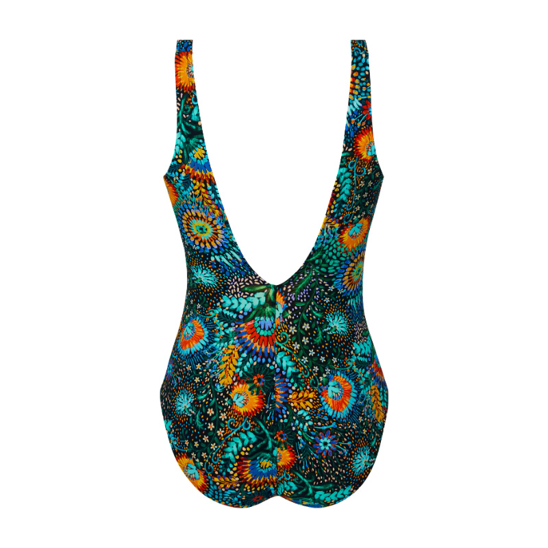 Nevyztužené jednodílné plavky vás zahalí do úchvatného uměleckého díla. Květinový potisk inspirovaný slavným obrazem Van Gogha doplněný třpytivými flitry rozzáří vaše křivky i letní opálení. Vychutnejte si léto plné vesmírné krásy s plavkami Beaute cosmique.