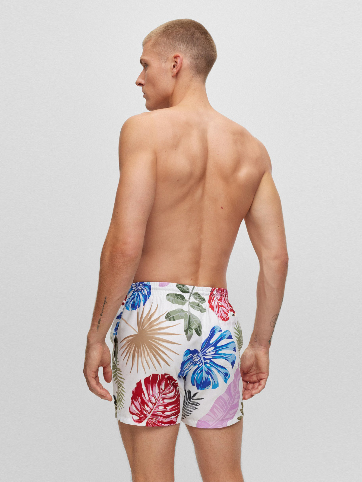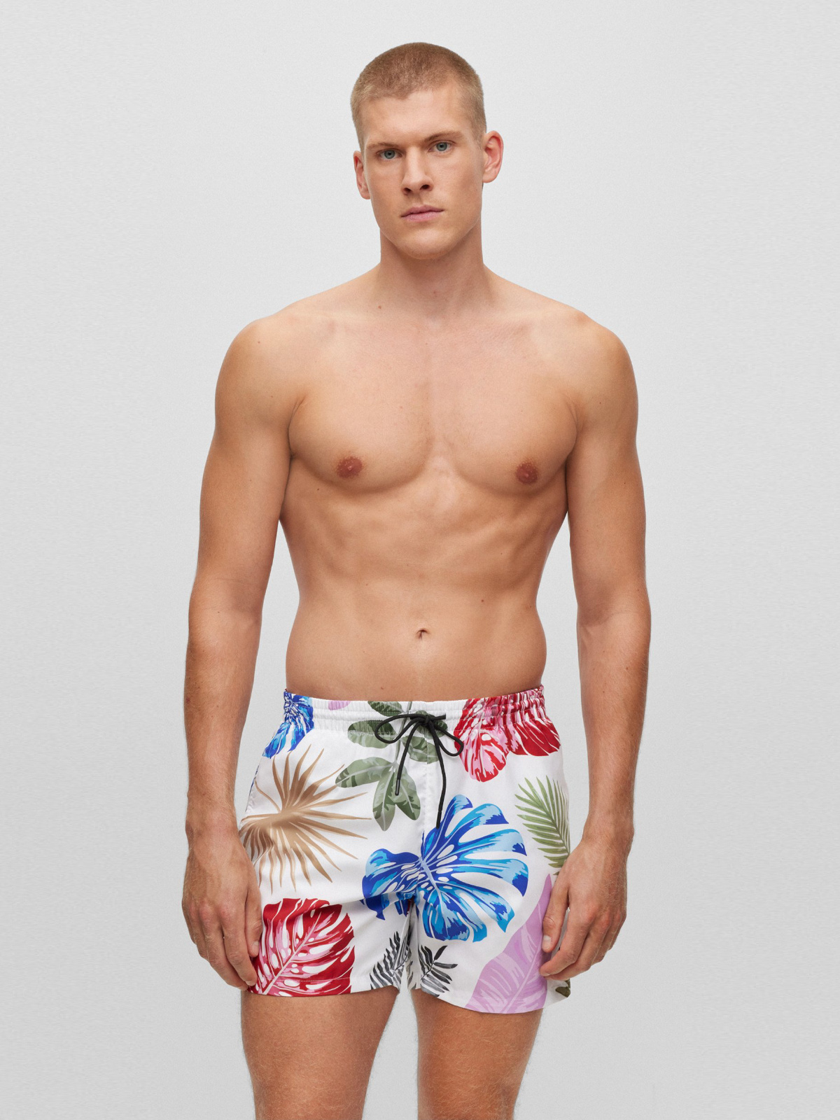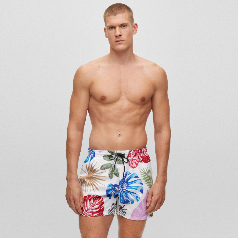 Živý potisk podrthuje dokonalý pocit z dovolené na pláži. Rychleschnoucí šortky jsou vyrobeny z polyesteru. Pas nese praktické zavazování a boční kapsy pojmou pár drobností.