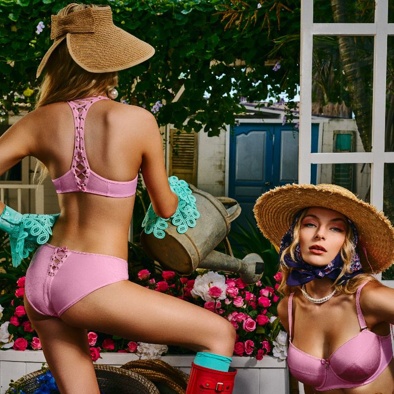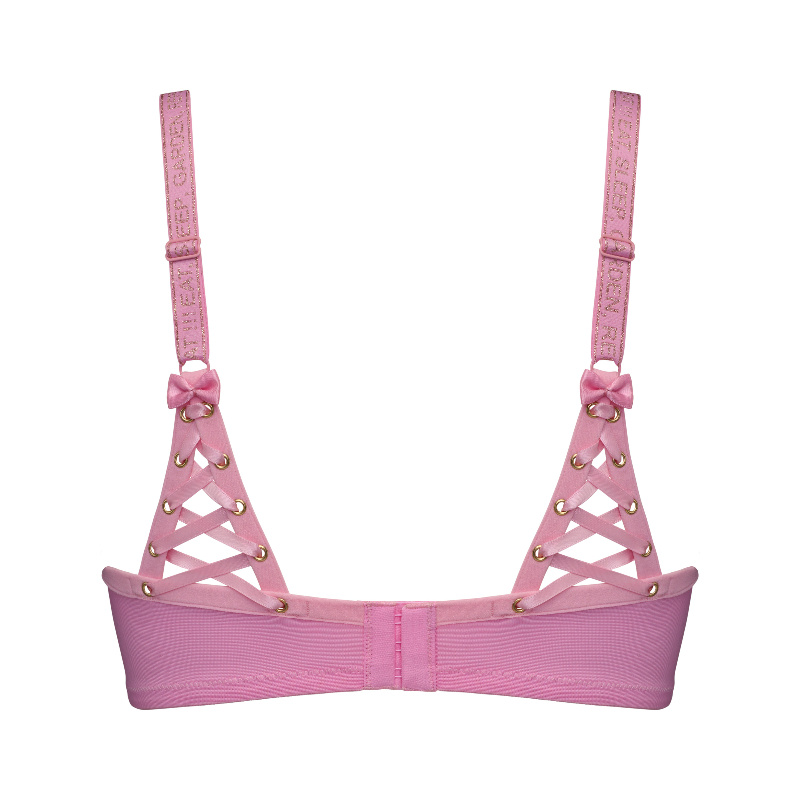 Vyztužená podprsenka plná luxusních detailů našla inspiraci v přepychových jeskyních z 18. století. Pudrově ružový lesk, opulentní dekorativní prvky ze saténových stužek a jemný rokoko potisk zobrazí ženskou něhu v těch nejjemnějších tónech. Buďte okouzlující bohyní s kolekcí Rococo.