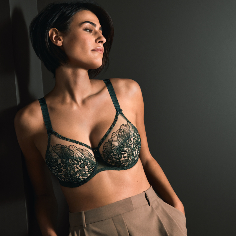 Vysoká nevyztužená podprsenka z kolekce Agathe zajistí velmi ženský tvar a pohodlí. Je tvořena bohatou guipure krajkou a lehkým plisovaným efektem. Tento kousek s květinovou výšivkou, jež tvoří dojem tetování dokonale vystihuje moderní, smyslný nádech celé kolekce.