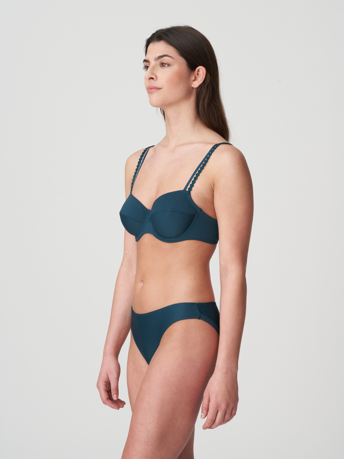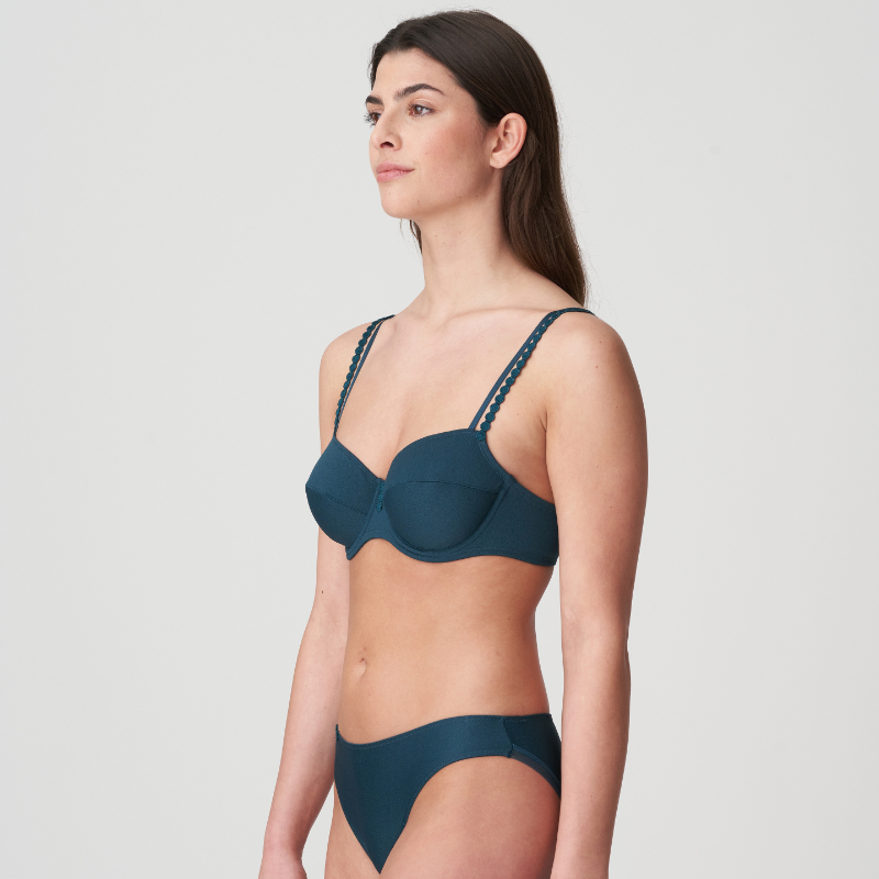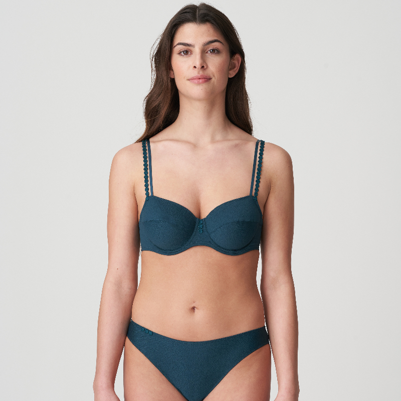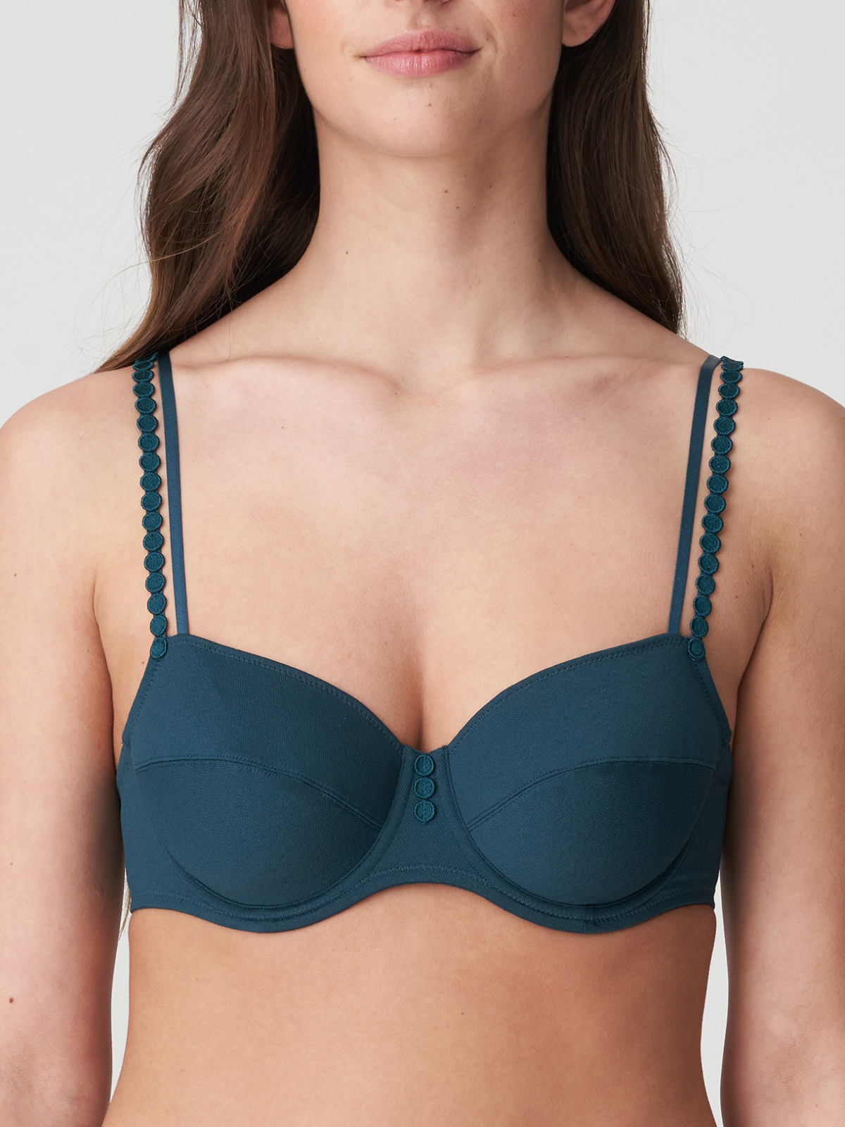 Podprsenka 3/4 nevyztužená je jedním z nejoblíbenějších střihů nevyztužených podprsenek pro střední a větší poprsí. Jak vyplývá ze samotného názvu, zahalují 3/4 prsou. Doporučujeme je pro košíčky E-G. Kvůli vyššímu středu nejsou tyto podprsenky vhodné do hlubokých výstřihů, za to je ale ocení každá milovnice košilí.