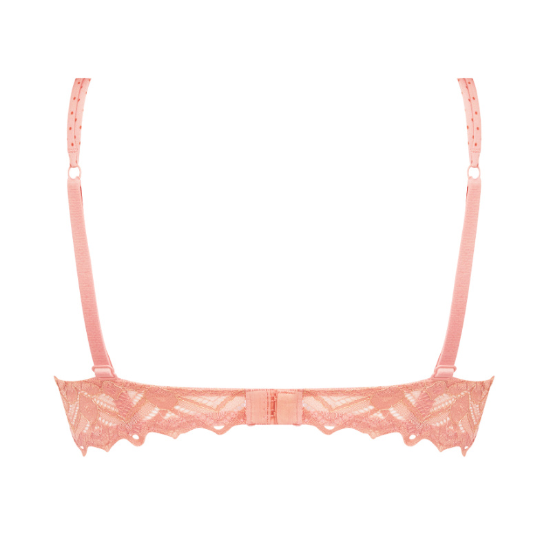 Vyztužená podprsenka vás svede opojným likérem něžnosti. Květinová krajka z měkkého žakáru protkaná zlatými lurexovými vlánky a puntíkovaný retro vzor dokazuje, že nadčasová elegance i retro styl jde ruku v ruce. Užívejte si jiskřivé energie s kolekcí Petille en glam.