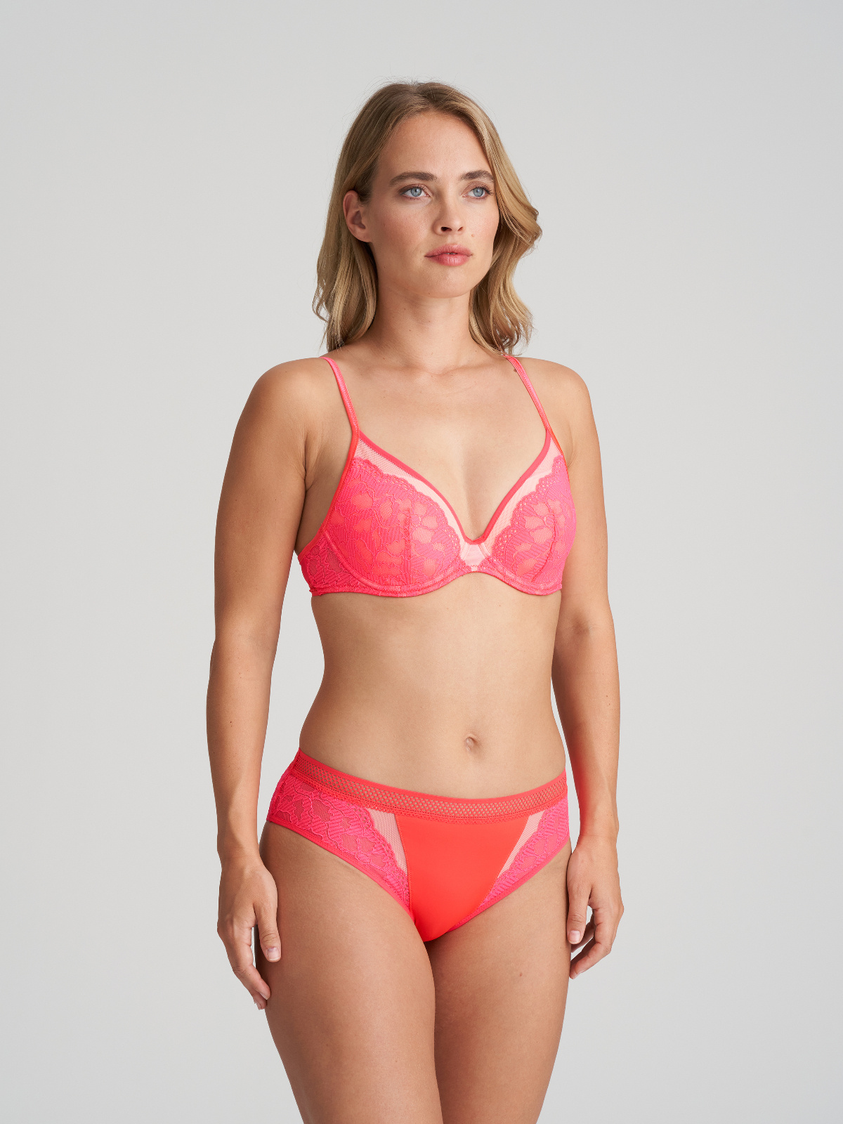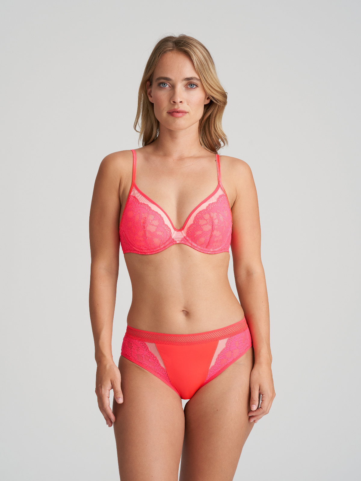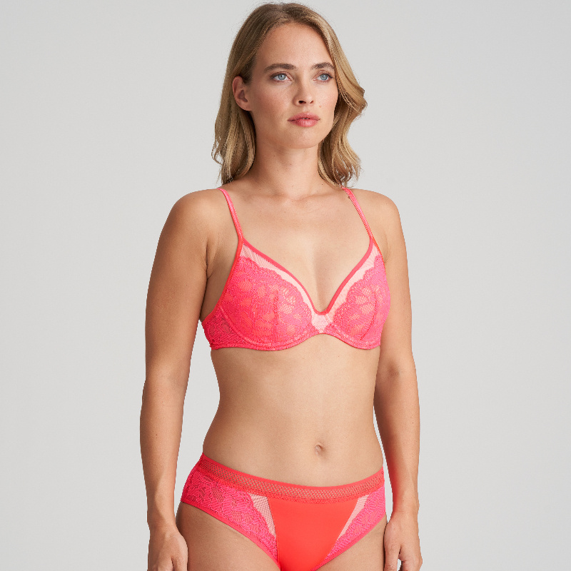 Srdíčkový střih podprsenek je typický především pro značky Marie Jo a Marie Jo L´Aventure. Tento uzavřenější typ podprsenek vyzkoušejte v případě, že preferujete hladké a pohodlné podprsenky s osobitým detailem, kterým můžou být jemně zdobená ramínka, košíček lemovaný krajkou nebo originální print.