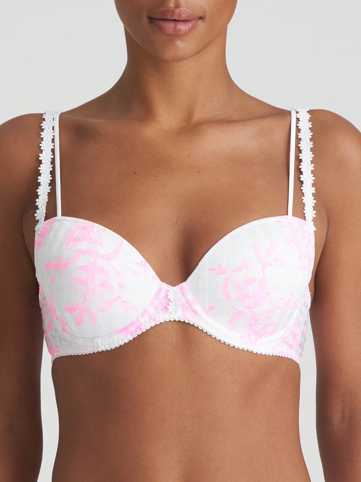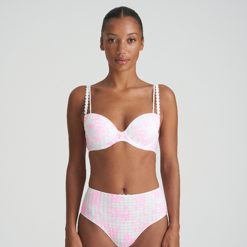 Jedná se o nejklasičtější střih podprsenek, který je vhodný pro košíčky B-D. My v Le Chaton mu s oblibou říkáme soutěskový, a to proto, že vytváří plný dekolt do výstřihu.