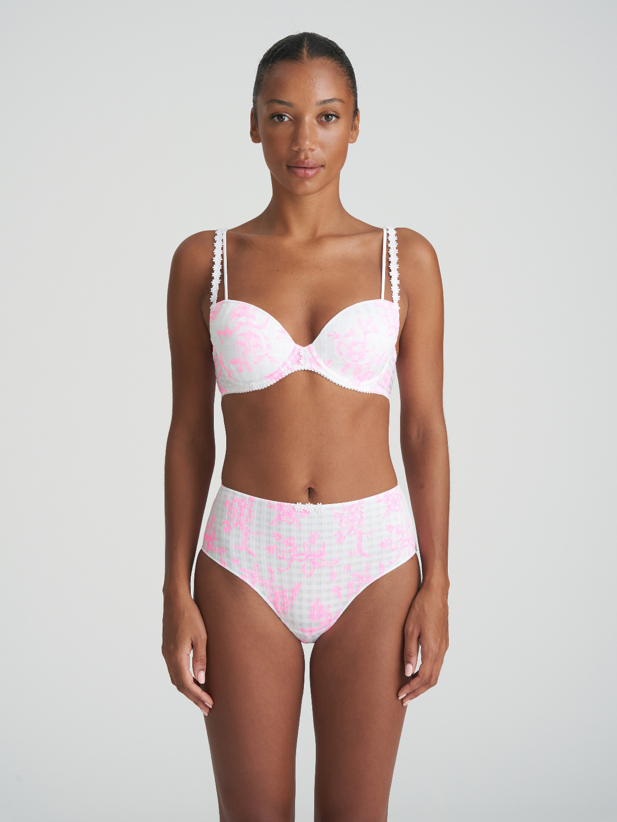 Vyztužená podprsenka následuje oblíbenou kolekci Avero, avšak oblékla něžný květinový potisk na nenápadném károvaném základu. Její hlavní přednosti jsou moderní elegance, svěžest a luxusní květinová švýcarská výšivka. Nová kolekce Avero tiny si zaslouží být vidět.