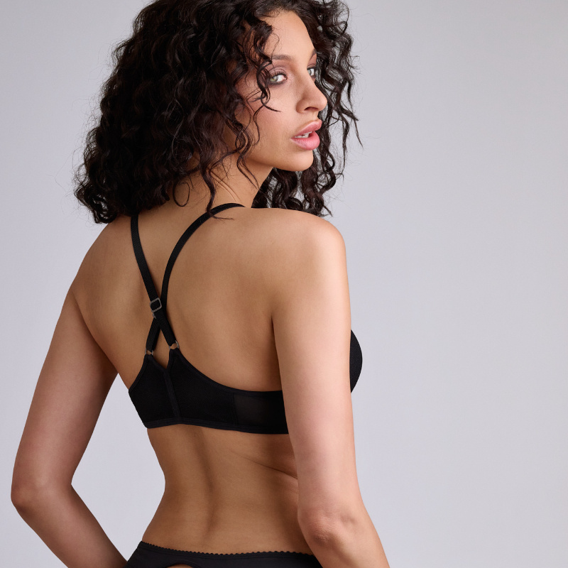 Sexy tanga k z kolekce The Mauritshuis. Puntíkované lemování jim dodává velmi ženský nádech. Na zadní straně byl přidán koketní detail výřezu. Horní část boků a hýždě jsou uprostřed zakryty sexy síťovaným detailem. Pokuste své smysly se značkou Marlies Dekkers.
