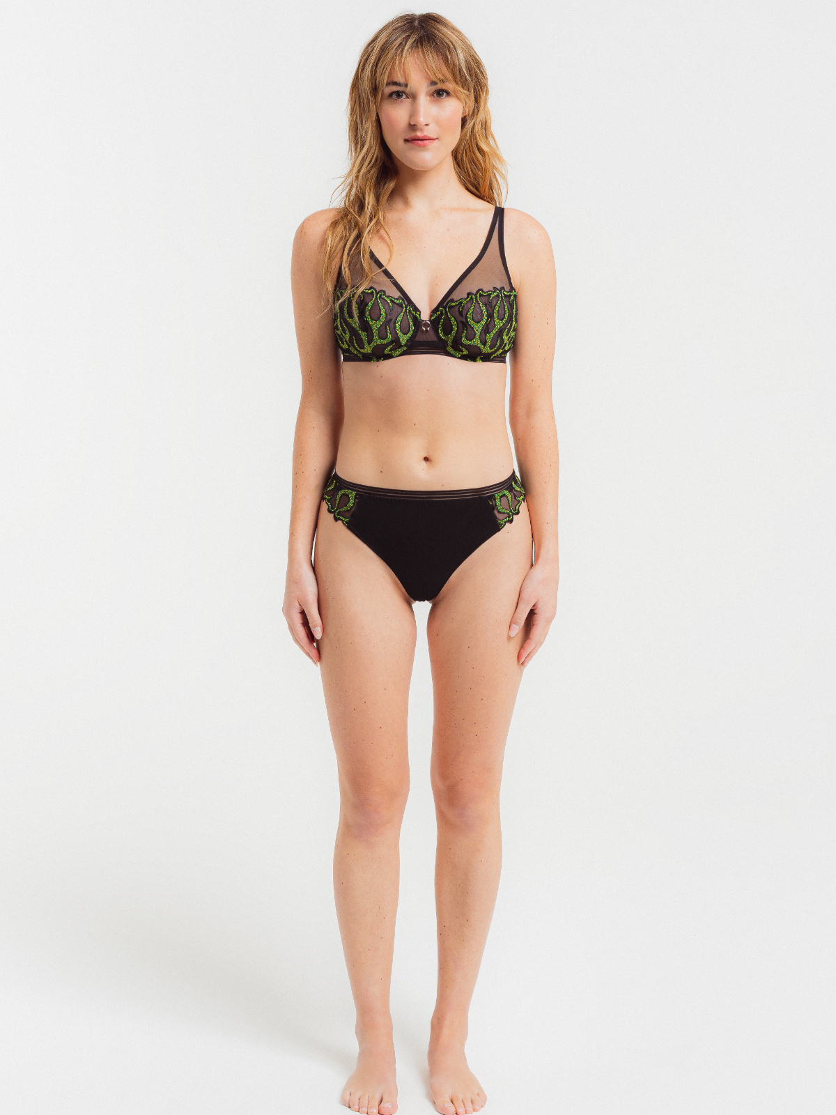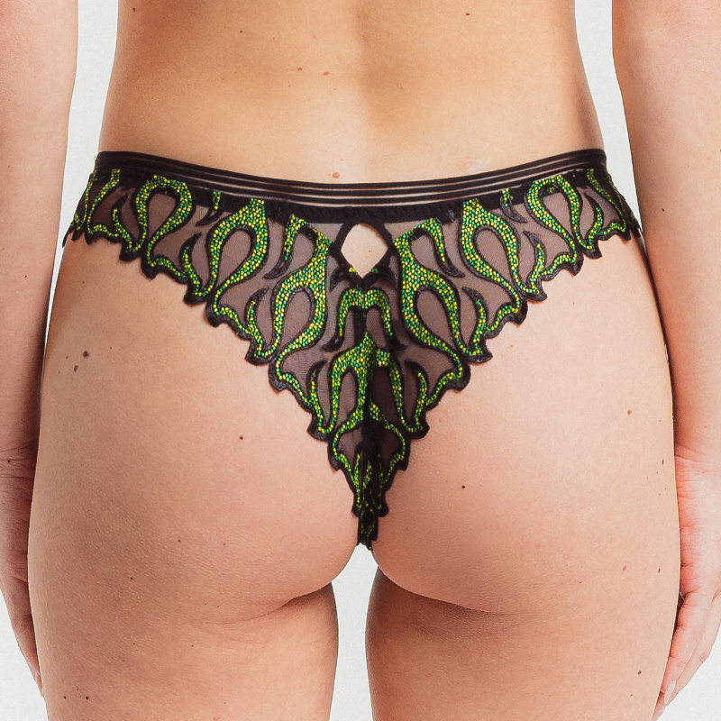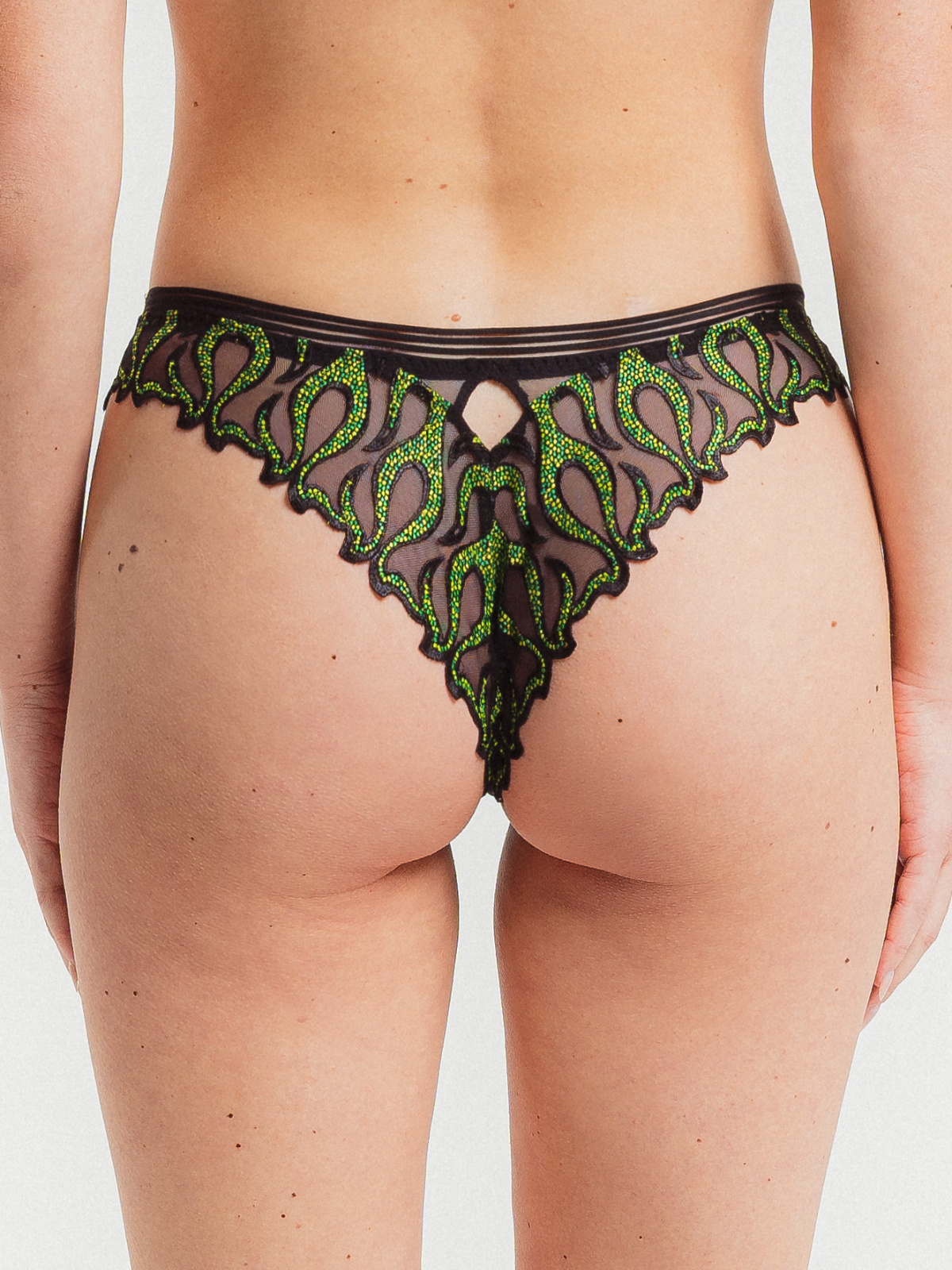 Tanga byla navržena pro odvážné ženy, které se nebojí zazářit. Luxusní spojení průhledného tylu, sametu, výrazných třpytivých výšivek a rafinovaných pásků je zárukou originální smyslnosti. Vystupte z davu s kolekcí Burning love.