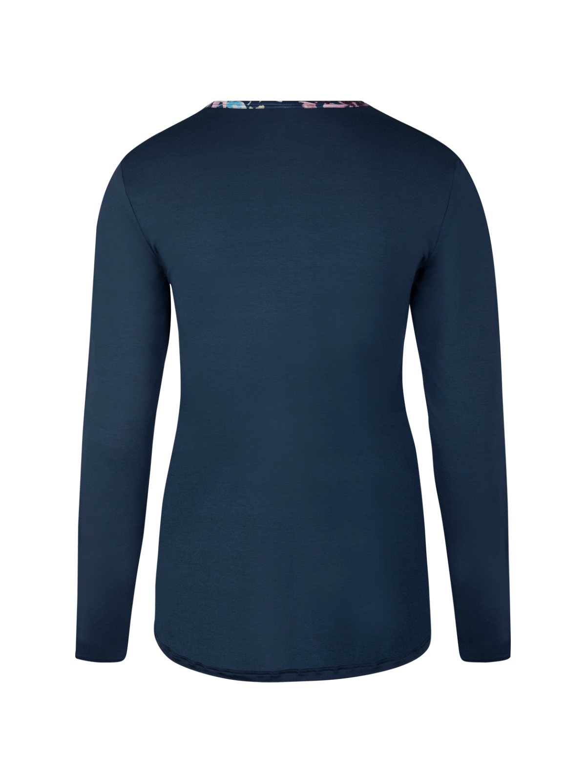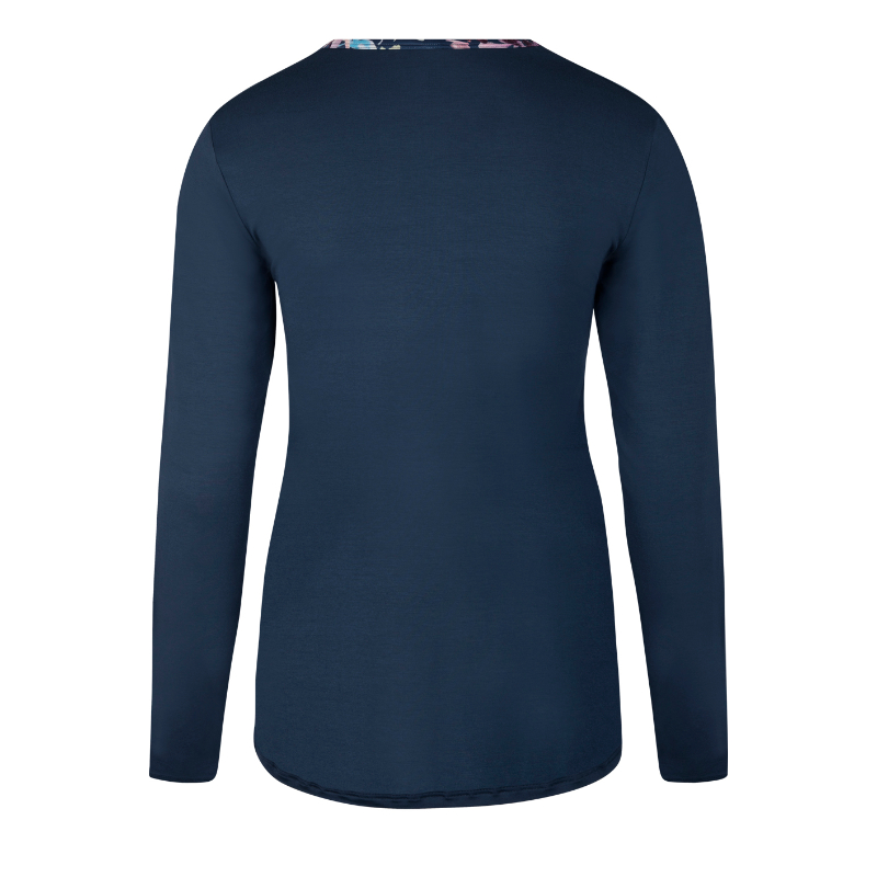 Triko s dlouhým rukávem je vaší vstupenkou do prvotřídního odpočinkového ráje. Jemné lehké mikrovlákno, květinový potisk a francouzský žakár vás bude zásobovat romantikou i královským pohodlím. Propadněte pokušení s kolekcí Mille petales.