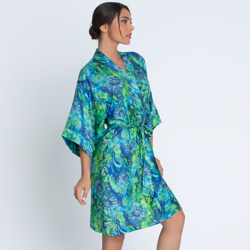 župan vám otevírá bránu do fascinujícího vodního světa. Luxusní květinový potisk inspirovaný křehkou krásou květů zrcadlících se na vodní hladině pohladí vaši pokožku neuvěřitelnou jemností. Rozplyňte se jako víla na vodní hladině s prádlem Grace aquatique.
