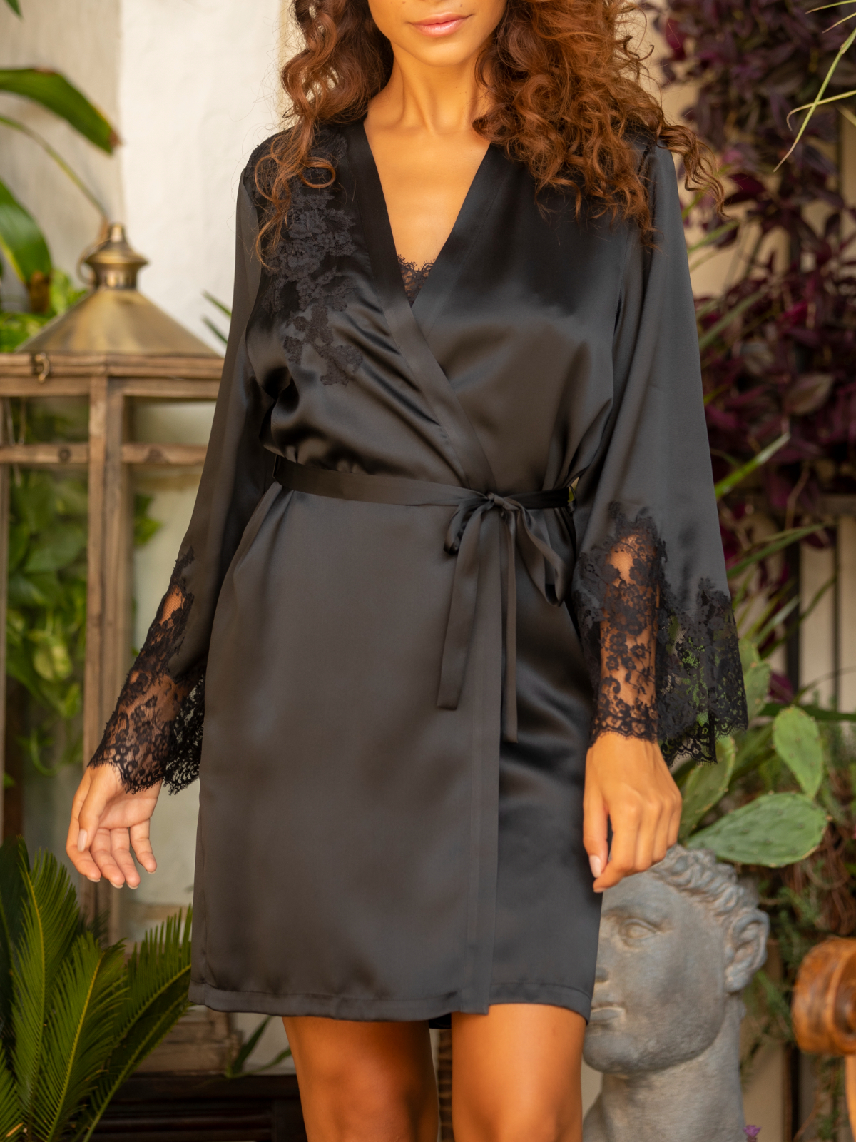 Župan Pearl je skutečnou perlou ve světe nočního prádla. Jemný hedvábný satén lehce padá přes ženské křivky a vykládaní ručně vystřihovanou francouzskou krajkou zdůrazní krásu pokožky tím nejsvůdnějším způsobem. Dopřejte si pocítit nevídaný luxus, který přináší dokonalé spojení krajky a hedvábí od Marjolaine.